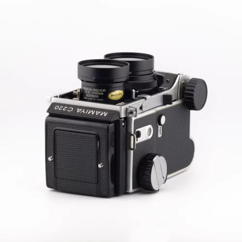 Lancé en 1968, le C220 a offert une alternative plus légère et accessible que le Mamiya C330. Son système d’objectifs interchangeables a séduit les photographes créatifs. Utilisé aussi bien par des amateurs avertis que par des professionnels, il reste un appareil culte du moyen format argentique.